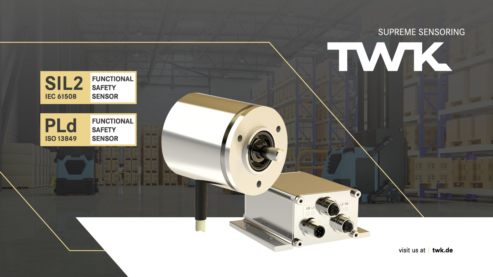 Machines are only as safe as their sensors. Many measured quantities must be recorded precisely and reliably. TWK supplies the sensors that are required to ensure functional safety - in particular for automated transport systems. These include certified sensors for position, speed, inclination, and acceleration, as well as draw wire linear transducers and accessories. The safety specialist is also a supplier of individual solutions - electronic and mechanical, just the way you want it.
